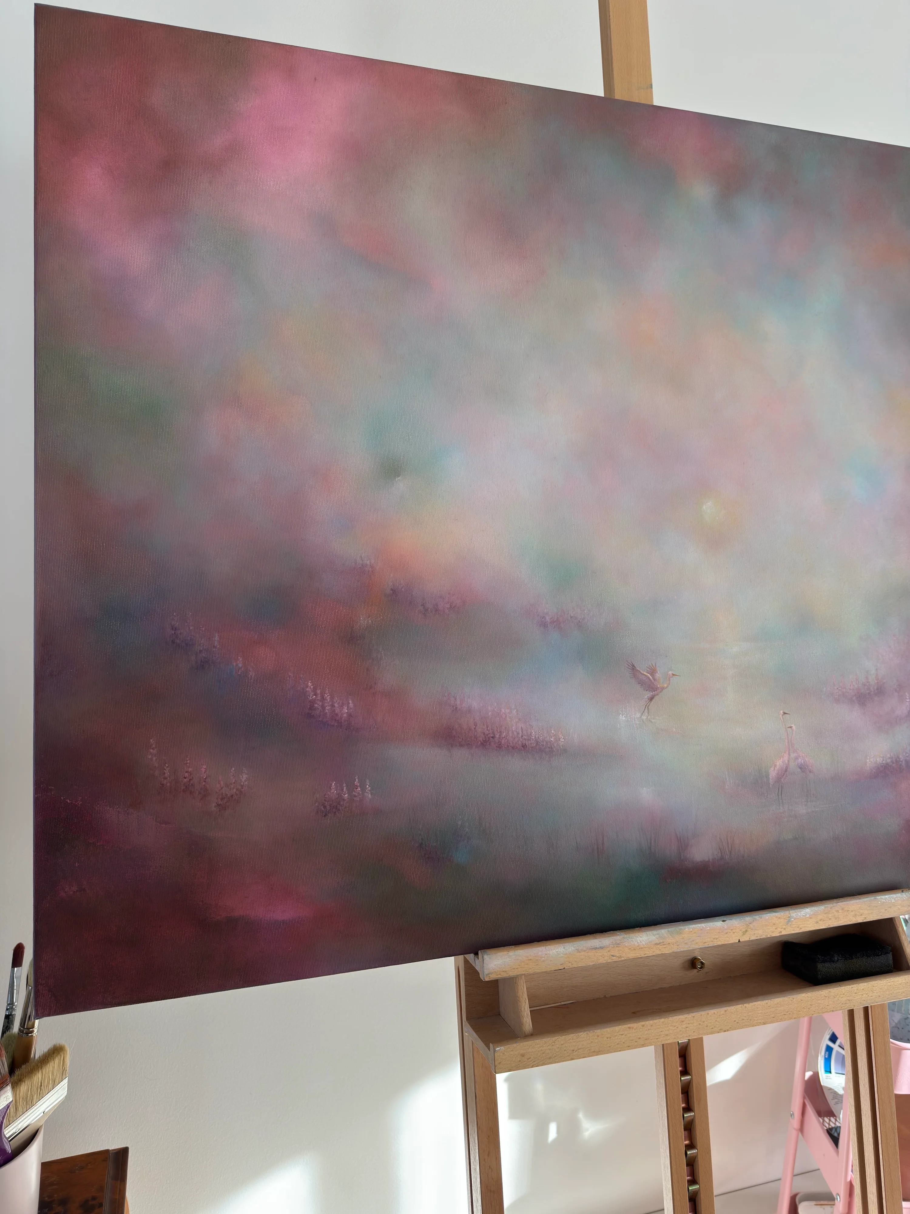 Acrylic, oil, and oil pastel on premium cotton canvas