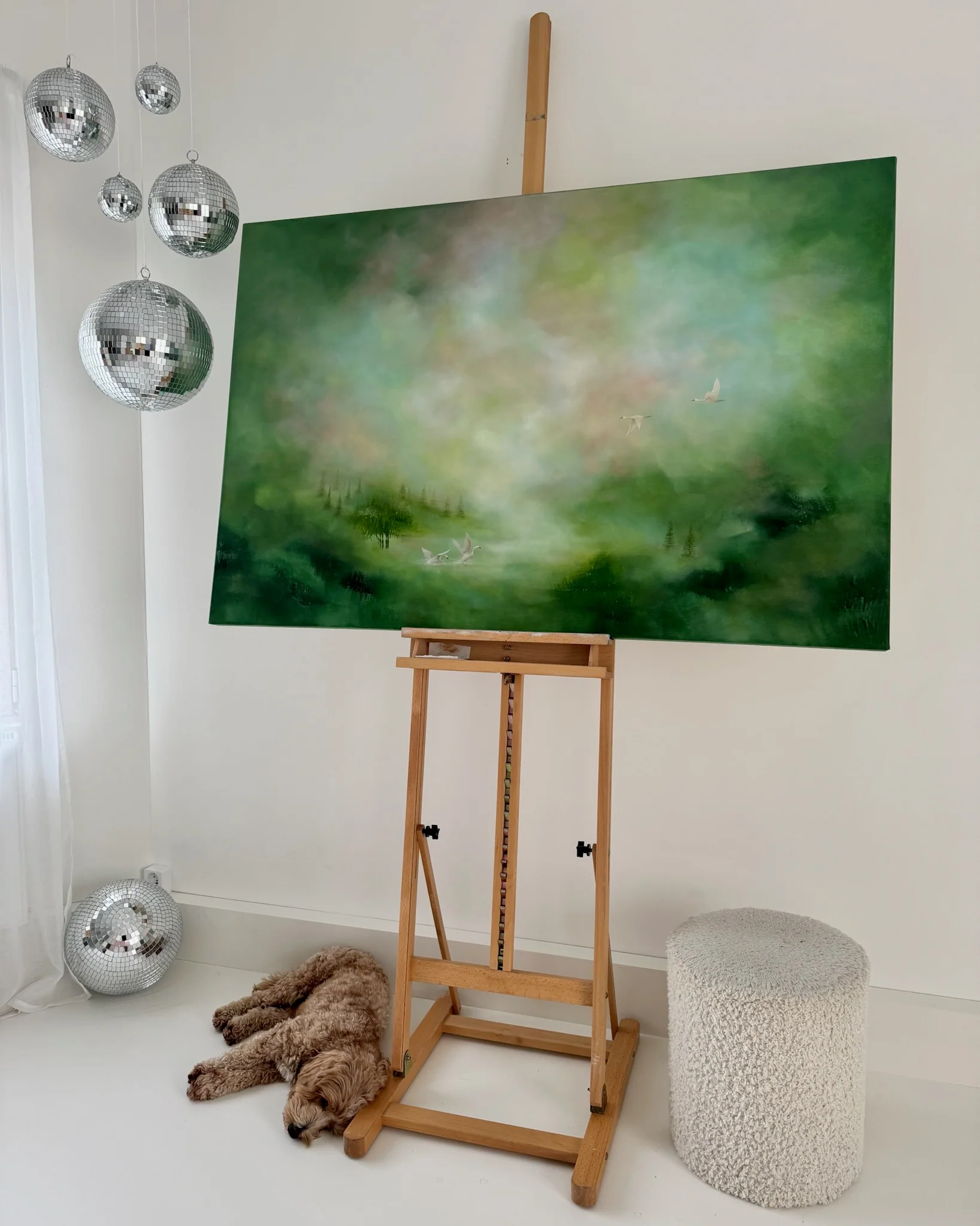 Acrylic, oil, and oil pastels on premium cotton canvas